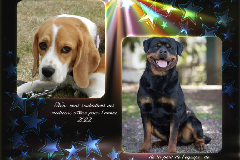 Notre équipe d’éducateurs canins sera au repos jusqu’au dimanche 2 janvier 2022 Nous vous souhaitons une année pleine de bonheur et de belles surprises. Des jours ensoleillés si ce n’est pas dans le ciel cela sera dans votre cœur et aussi dans celui de vos compagnons à 4 pattes Bonne Année 2022